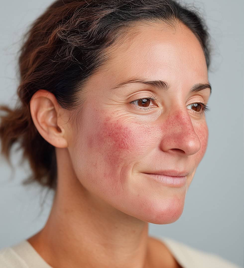 Hauterkrankungen wie Rosacea, Veranlagung oder eine intenvive Sonneneinstrahlung können im Laufe des Lebens unschöne Rötungen und Gefässerweiterungen im Gesicht-/Halsbereich verursachen.